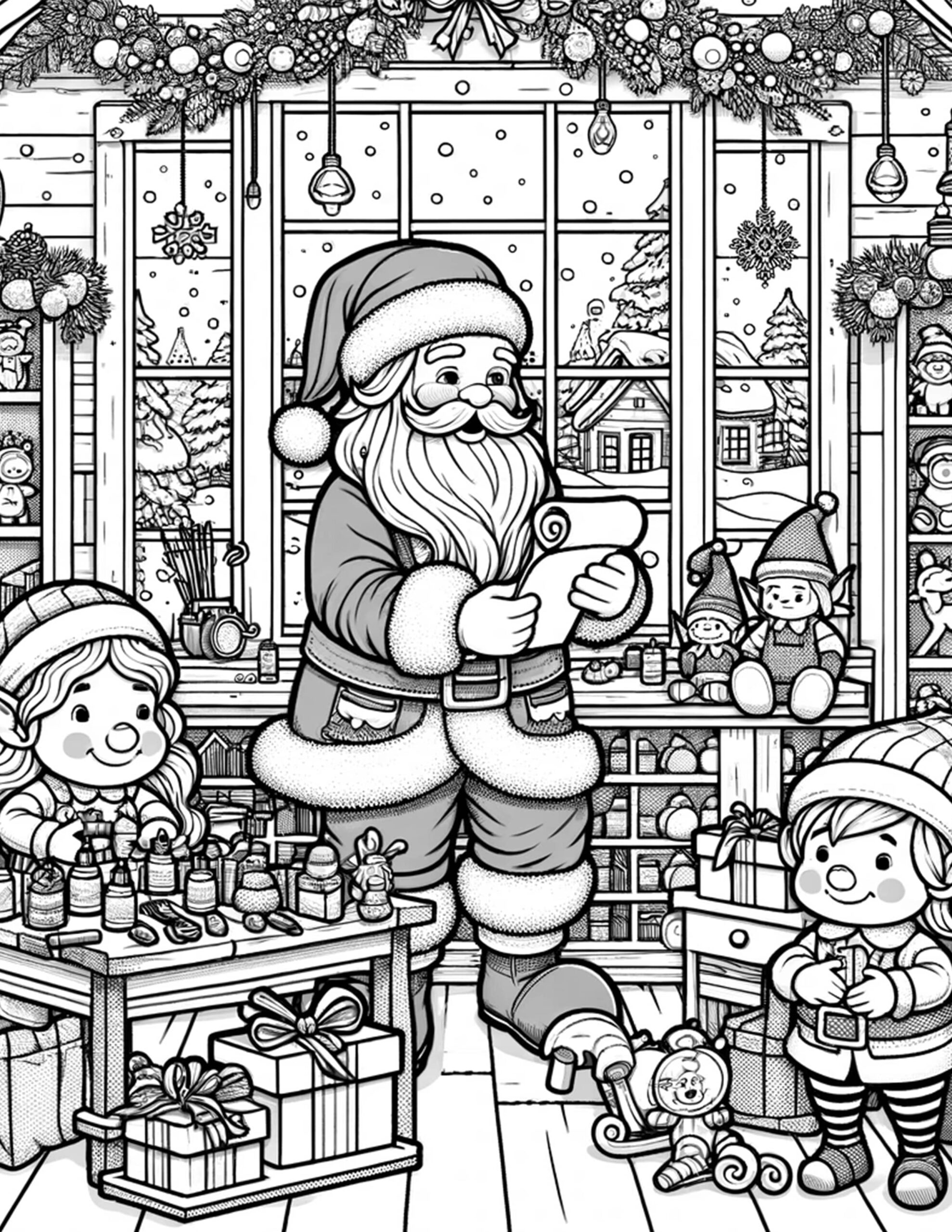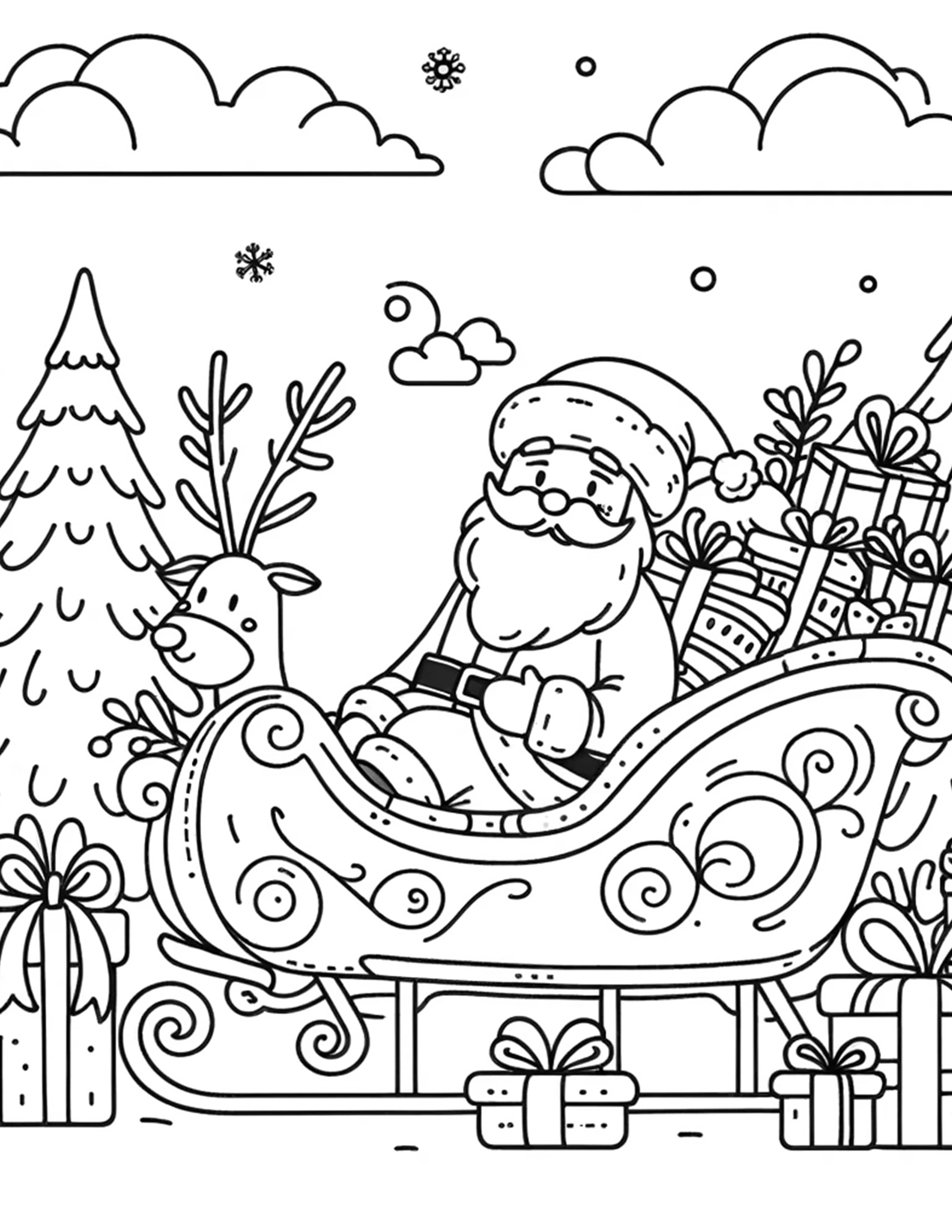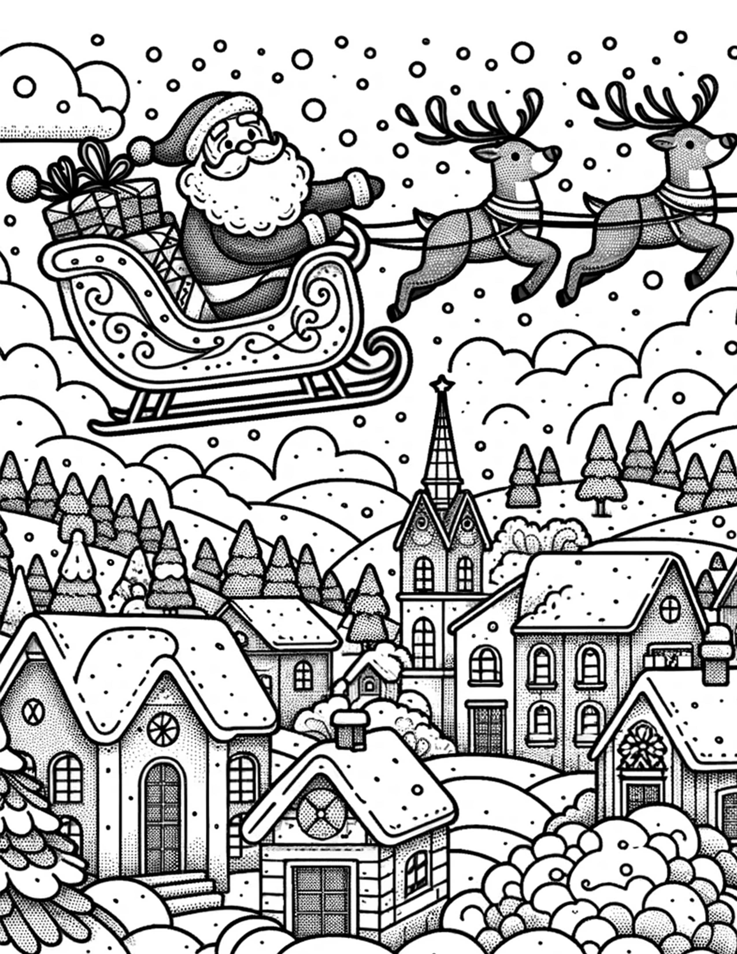 From Santa checking his list to his charming sleigh rides, our pages include an array of scenes that cater to various age groups and artistic preferences. Whether you’re looking for simple designs for toddlers or more intricate zentangles for adults, our collection is inclusive and diverse.